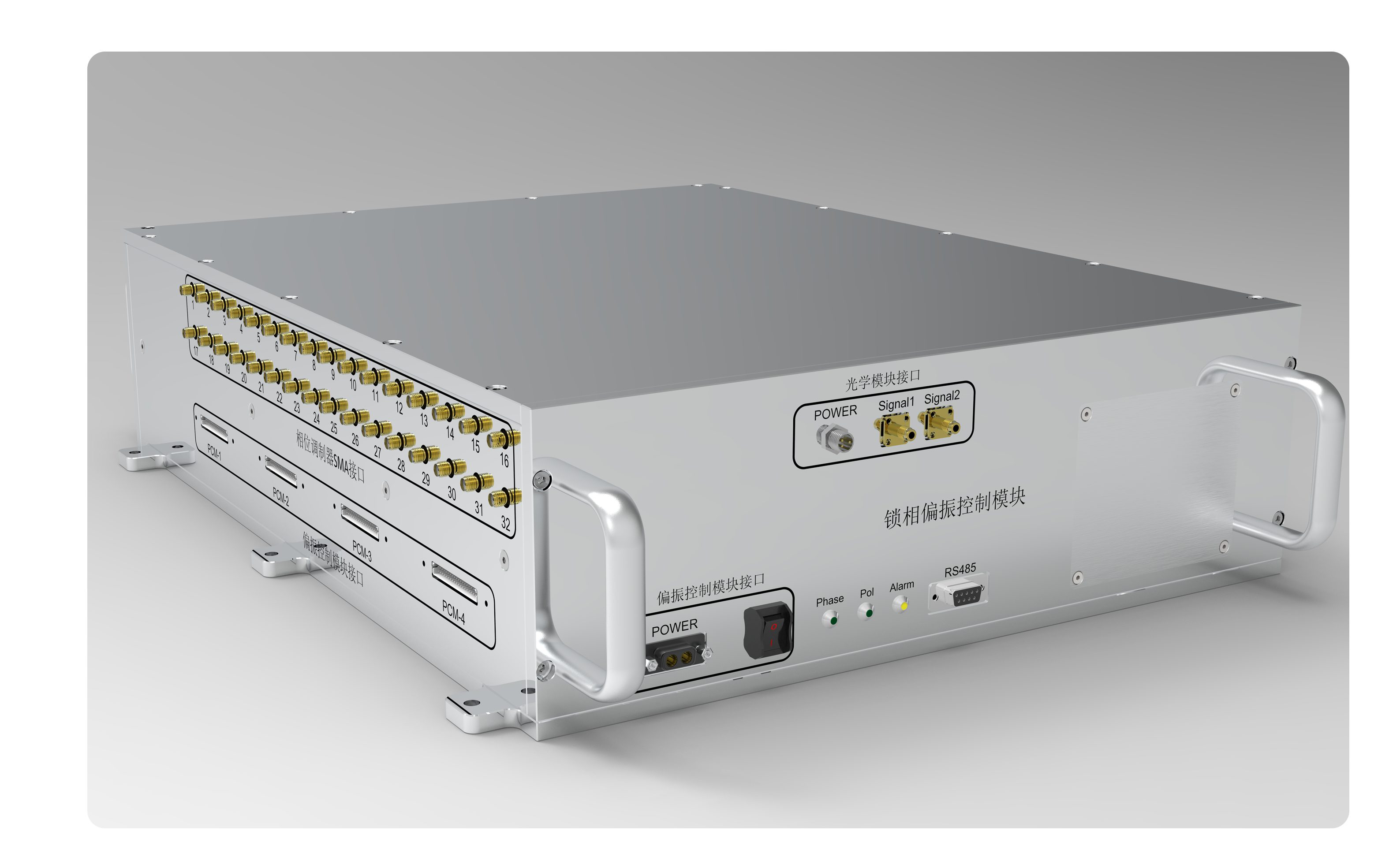 多通道主动相位+偏振控制模块,是一款面向多路光纤激光相干合成应用需求而开发的,具有模块化、智能化、可扩展特点的主动控制模块产品。采用ADC+FPGA实时监测合成光,通过DAC + FPGA输出电压控制相位调制器和电控偏振控制器,使系统实时稳定在最佳状态。其基于自研的主动控制算法,其中相位锁定部分结合AI加速可实现一步锁相,偏振锁定则采用基于白盒数字孪生的锁定算法。得益于其内置的基于人工智能加速的算法,大大提升了锁相控制收敛时间和锁相后的稳定性。